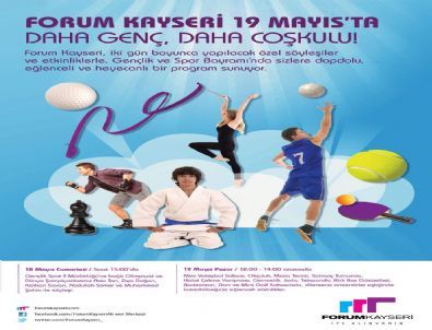 Forum Kayseri, 19 Mayıs Atatürk’ü Anma, Gençlik ve Spor Bayramı’nı Olimpiyat ve Dünya Şampiyonu sporcularla söyleşiler ve çeşitli spor dallarında gerçekleştirilecek etkinliklerle kutlayacak.