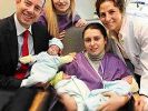 Doğum ekibi, dışarı çıkmak isteyen bebeklerden birinin ayağını içeri sokup, rahim ağzına dikiş attı. Sabırsız bebekler 5 hafta daha anne karnında bekledikten sonra sağlıklı bir şekilde dünyaya geldi