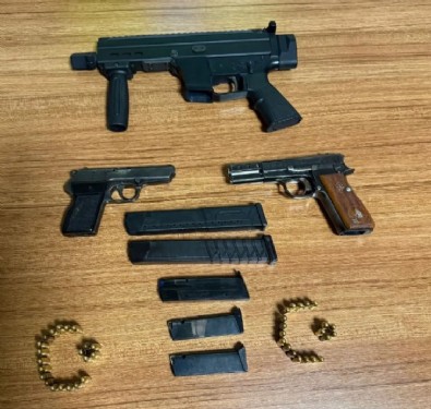 Belirlenen adrese yapılan baskında, S. Ö.'ye ait evdeki gardıroba gizlenmiş poşette 1'i otomatik 3 ruhsatsız tabanca, 5 şarjör ve 81 mermi ele geçirildi.