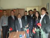 Ziyaretin ardından AK Partili heyet Emniyet Müdürlüğü'ndeki tüm birimleri gezerek birim amirlerine ve polislere gül verdi.