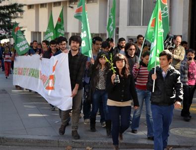 Gençler Meydana Derneği (Genç-Der) yanlısı bir grup, ellerinde fidanlarla YÖK'e izinsiz yürüyüş yapmak istedi.