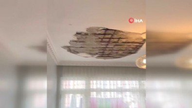 Terazidere Mahallesi'ndeki bir dairenin tavanındaki alçı ve sıvalar salonda oyun oynayan çocukların üzerine düştü. O sırada gelen gürültüyle mutfaktan salona çocuklarının yanına koşan baba, yakınlarını arayarak yardım istedi. Komşular, ailenin yardımına koştu.