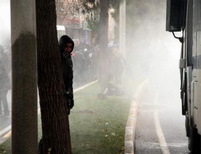 İl binasında toplanan BDP’liler, Koşuyolu Parkı’na yürümek istedi. Yürüyüş öncesi BDP’liler ile polisler arasından görüşmeler yapıldı. Polis, göstericilerin arasından bulunan yüzleri maskeli kişilerin yer alması üzerine yürüyüşe izin vermeyeceğini bildirerek, Türkçe ve Kürtçe anons yaptı. Polis, yaptığı anonsta, çözüm sürecinin zarar uğramaması için sağduyu çağrısında bulundu. Bir süre yapılan görüşmenin ardında yüzleri maskeli kişiler, yüzlerini açmalarıyla yürüyüşe geçildi. Yürüyüş esnasında polis, grubun bu kez içerisinde yasa dışı pankartların olduğunu ve bunları kaldırılmasını istedi. Yürüyüşte yer alan BDP Eşbaşkanı Gultan Kışanak, polis yetkilileriyle yaptığı görüşme esnasında grup içerisinden polise el yapımı bomba atıldı. Atılan bombada 4 polis yaralandı. Yaşan gerginliğin ardından polis, BDP’lilere basın açıklamalarını burada yapıp dağılmasını istedi. Bunun üzerine BDP Eşbaşkanı Gultan Kışanak, açıklama yaptı. Kışanak’ın açıklaması bitirdiği gibi, göstericiler arasından polise bu kez taşlı saldırı yapıldı. Yapılan saldırın ardında polis biber gazı kullanarak göstericilere müdahale etti. Yaşanan müdahalede annesinin kucağında bulunan bir bebek ile çok sayıda gösterici biber gazından etkilendi. Ara sokaklara kaçan göstericilerin yakalanması için polis çalışma başlatırken, çok sayıda kişinin gözaltına alındığı öğrenildi