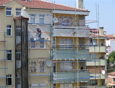 Bilecik'te konutların dış cephesinde yapılan mantolamada bor karışımlı sıva kullanımı başladı.