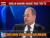 Sağlık Bakanı Recep Akdağ, ABD'nin Gayrisafi yurt içi hasılasının yüzde 15'ini sağlığa harcadığını belirterek, "Sistemi çok kötü. Çünkü orada bir takım lobiler adeta hükümetleri veya yönetimleri böyle boğazını sıkmış kıpırdatmıyor. Türkiye'de biz güçlü bir iktidar olarak bunu başardık. Bir defa lobilerin etkisi altında kalmadık" dedi.