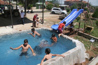 Denizli’de sıcaktan bunalan çocuklar, köy meydanına yapılacak olan ancak inşaatı tamamlanamayan süs havuzunun inşaatını kendi imkanlarıyla yüzme havuzuna çevirip bir de kaydırak yaptı.