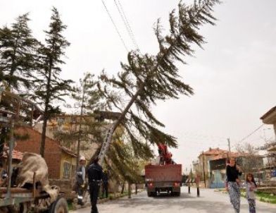 Afyonkarahisar’da fırtına, çam ağaçları ve elektrik direklerini devirdi.