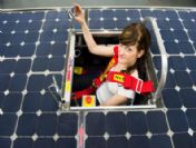 epa02125967 Student Carmen Wowtscherk of the Lausitz college sits in the solar-powered vehicle Suncatcher Phase II in Senftenberg, Germany, 21 April 2010. The college presented two self-developed vehicles with which the sudents will participate in the Shell Eco-marathon Europe at Eurospeedway Lausitz on 0607 May 2010. The goal of the efficiency competition is to construct a vehicle that drives the longest distance with the least of fuel. Conventionalalternative fuels can be used in the conpetition. EPA/Patrick Pleul