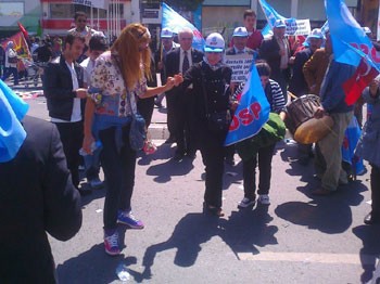 Sabahın erken saatlerinde vatandaşların arasına karışan güzel şarkıcı Bugün devrimci yanım kabarrdı. eski den beri halkın içinde yaşar onların duygularına tercuman olmayı seven bir ruhum var. Bugün de öyle oldu. İşci ve Devrimci kardeşlerimin yanında onlara destek verip işcilerle halay çekmek çok güzel. İyiki gelmişim deşarj oldum ' dedi.