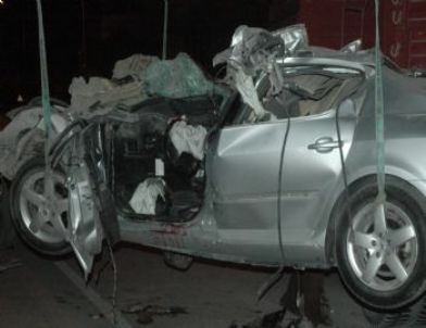 Konya’da aşırı hızla giden bir otomobil, kavşaktan geçen TIR’a ortadan çarptı.