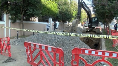 Olay yerine gelen ekipler, sokağın giriş ve çıkışına şerit çekerek kazı alanında inceleme yaptı.