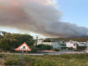 İzmir`in Seferihisar ilçesi Kuyucak mevkiinde saat 13:10 sıralarında çıkan orman yangınına ekipler müdahale ediyor.