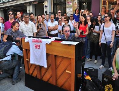 İzmir Alsancak’ta bir araya gelen tiyatro, opera ve bale sanatçıları, sokak ortasına kurdukları piyano eşliğinde opera seslendirerek Türkiye Sanat Kurumu'yla ilgili yasa tasarısını protesto etti.