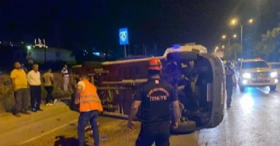S.K. idaresindeki 46 S 1286 plakalı işçi servisi minibüsü, Batı Çevre Yolu mevkisinde refüje çarparak devrildi.