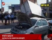 Antalya'da freni boşalan kamyon, 5 araç ve bisiklete çarptıktan sonra yol kenarındaki büfeye girerek durabildi. Kazada 4 kişi yaralandı.