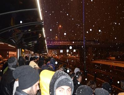 Kar Yağışı Metrobüs Yolunu Yaya Yoluna Çevirdi