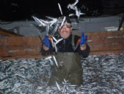 Limandan denize açılır açılmaz hemen ağlarını seren hamsi tekneleri, 10 kilometrelik mesafe boyunca rengarenk görüntüler oluşturdular. Hamsinin bol çıkması hem balıkçı teknesi sahiplerini hem de çalışan tayfaların yüzünü güldürdü.