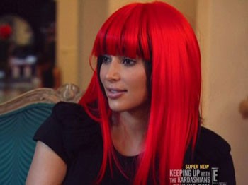 Aile dostu Malika ile birlikte bir peruk dükkanını ziyaret eden Kardashian bir çok renkte peruk denedi. Kafasında en çok kırmızı ve siyah renkte ki peruğu beğenen süperstar programına kırmızı perukla devam etti.
