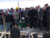Yapılan konuşmaların ardından Müsteşar Mehmet Habip Soluk, ilk çimentoyu atarak yemekhane ve çarşı binasının inşaatını başlattı.