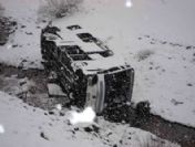 Kırşehir'in Mucur ilçesinde yoldaki buzlanma sebebi ile devrilen yolcu otobüsündeki 35 kişi yaralandı.