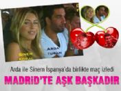 Arda Turan'ın Atletico Madrid'e transferinin ardından Madrid'e giden sevgilisi Sinem Kobal, İspanya'daki magazincilerin objektiflerine poz verdi. Atletico Madrid'in UEFA Avrupa Ligi'nde Portekiz ekibi Guimares'le oynadığı maçı izleyen çift, Madrid ekibinin maçı kazanmasıyla daha da keyiflendiler. Arda ve Sinem'e Galatasaray'a transferi gündemde olan Uruguaylı golcü Diego Forlan da eşlik etti.