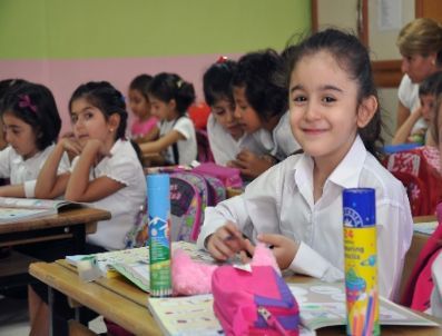 İlk derste öğrencilerin eğitim yılı boyunca kullanacaklar sıraları üzerinde hazır bulunduruldu.