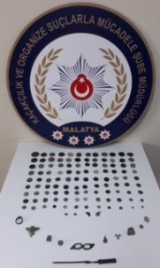 Malatya'da düzenlenen operasyonda Roma ve Bizans dönemine ait olduğu tahmin edilen sikke, yüzük ve küpelerden oluşan metal objeler ele geçirildi.