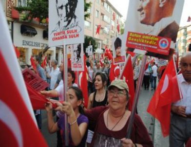 Küçükyalı Adnan Kahveci Parkı’nda toplanan vatandaşlar ellerinde “Yurtta sulh cihanda sulh” yazılı dövizleri taşıyarak “Türkiye laiktir laik kalacak” ve “Mustafa Kemal’in askerleriyiz” şeklinde sloganlar attı. Ardından meşaleler yakan vatandaşlar, yaklaşık 2,5 kilometrelik yürüyüşten sonra Kartal Meydanı’na ulaştı.