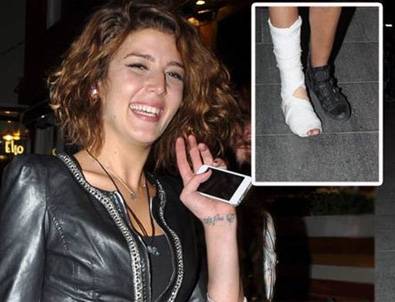 Bir ayağı alçıda olan güzel manken basın mensuplarını karşısında görünce, birlikte samimi bir şekilde yürüdüğü beyden uzaklaşarak objektiflere “Zafer işareti” yaptı. Kuyucuoğlu, tek ayağının alçıda oluşunu farkedip geçmiş olsun diyen muhabirlere, “Topuklu ayakkabıyla merdivenlerden uçtum, ama azimliyim. Gördüğünüz gibi ayağımda alçı olsada yürüyorum, sağlıklıyım ve hızla iyileşiyorum” diye konuştu.