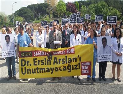 Ersin Arslan için saygı duruşu ile başlayan törende konuşan Dr Gül Dabak, "Ersin Aslan Gaziantep'te bir hasta yakını tarafından bıçaklanarak katledildi. Aradan iki yıl geçti ancak sağlık çalışanları Türkiye'nin dört bir yanında her gün şiddet görmeye devam ediyor. Ersin'in ölümünden sonra genç bir sağlık emekçisi sisteme isyanını kemdi canı ile ödedi.