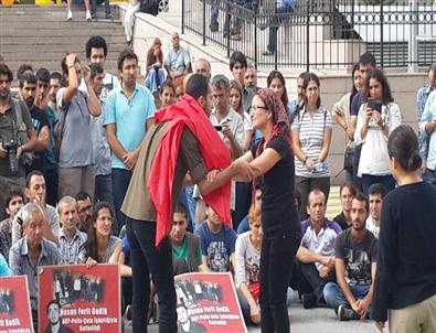 Basın açıklamasının ardından Nuray Gedik ve beraberindeki grup, ellerinde “Hasan Ferit Gedik ölümsüzdür” yazılı pankartlar taşıyarak, çeşitli sloganlar attı. Kartal Meydanı’na yürümek isteyen grup, polis ekipleriyle zaman zaman gerginlik yaşadı. Polisin ikazlarına uyan grup, yolu işgal etmeden yol kenarından yürüyerek Kartal Meydanı’na gitti.