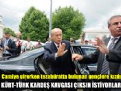 MHP Ldieri Devlet Bahçeli, Kırşehir mitingi öncesi cami önünde parti bayrağı sallayan ve alkış tutan ülkücü gençleri uyardı.