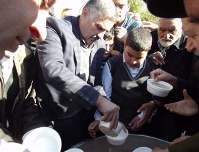Yenikarpuzlu Belediyesi düğün salonunda okunan mevlit sonunda katılımcılara pilav, ayran ve aşure ikram edildi.