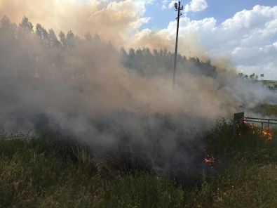 Camiden çıktıkları sırada yangını gören vatandaşların ağaç dalları ve küreklerle müdahale ettiği yangının söndürülememesi üzerine itfaiye ekiplerine haber verildi.