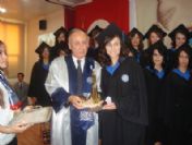 Rektör Yardımcısı Prof . Dr . Mehmet Süer Anaç ise " Bugün sizlerde uzun süren bir eğitim ve öğretimin ardından buradan ayrılacaksınız . Mezuniyetler tıpkı düğün gibidir . Hep sevinçler ve geleceğin umutları yaşanır . Ege Üniversitesi 55 yıllık evrensel sürecinde binlerce mezun vererek , Bugün Anadolu ' un en ücra köşelerine kadar mühendis , doktor , hemşire , avukat , öğretmen ve çeşitli branşlarda bilim adamlarını bu ülkenin hizmetine kazandırdı . Türkiye açısından ele alacak olursak 55 yıllık süreç çok uzun zaman değil . 55 yılda ilk 5 üniversite arasında olmaktan gurur duyuyoruz . Ancak bugün Avrupa ve çeşitli ülkelerde 800 ve 900 yıllık mazisi olan üniversiteler var . Evrensel ölçülerde de biz yarım asrı geçen bir üniversite olarak , çağın gerektirdiği tüm bilimsel verileri de yakalama ve onların hayata geçirilmesinde sürekli çalışmaktayız . Bu yüzden sağlık yüksek okullarımız da Sağlık Bilimleri Fakültesi olarak hayata geçirmeye çalışıyoruz . Bu alanda girişimlerimiz var " şeklinde konuştu . Konuşmaların ardından dereceye giren öğrencilere ödül , diploma ve onur belgeleri protokol mensupları tarafından verildi . Bu sene mezuniyet töreninde çiçek yerine Ege Orman Vakfı ' na bağış yapıldı . Okul birincisi Nihal Yolcu yaş kütüğüne plaketi çaktıktan sonra , mezun öğrenciler de belgelerini alarak Hemşirelik Andı ' nı söylediler .