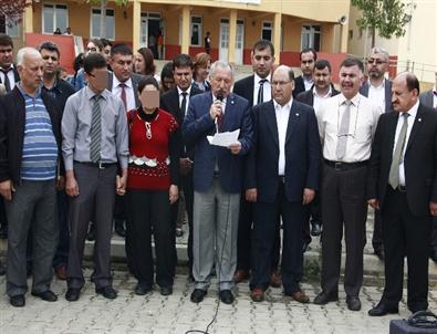 Olayın meydana geldiği Evliya Çelebi İlköğretim Okulu'nda toplanan çeşitli sendikalara üye eğitimciler, öğretmenin darp edilmesini, okul önünde protesto etti