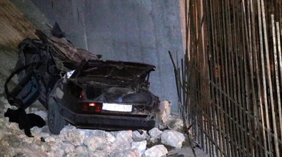 Otomobil, 6 metre yükseklikten uçup köprü ayağına çarptı; 4 ölü