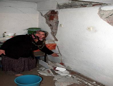 Bazı evlerin duvarlarının birbirinden ayrılması dikkat çekerken, köylüler korku içinde yaşadıklarını söyledi.