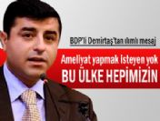 BDP Grup başkanı Selahattin Demirtaş, Başbakan Recep Tayyip Erdoğan'ın, "Vatan toprakları üzerinde ameliyat yaptırmayız" sözlerine yanıt verdi. Demirtaş, "Ameliyat yapmak isteyen yok. Başbakan'ın bu ülkeyi sanki birileri bölmeye çalışıyor da o kurtarmaya çalıyor gibi bir havaya girmesini doğru bulmuyoruz. Bu ülke hepimizindir"dedi.