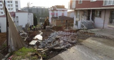 Ekipler tarafından sokak üzerinde doğalgaz ve elektrik tedbir amacıyla kesilirken, iş makinesiyle yolda çalışmalara başlandı.