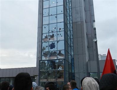 Başbakanlık binasının camları indi, polis müdahaleye başladı.