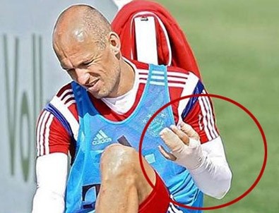 Devre arası hazırlıklarına Katar'ın başkenti Doha'da devam eden Bayern Münih'in son idmanında Arjen Robben'in elinin bandajla sarılı olması dikkati çekti.
