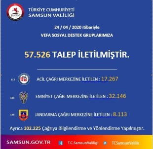 Samsun Valiliği tarafından 24 Nisan 2020 tarihi itibarıyla 57 bin 526 vefa destek çağrısı yapıldığı açıklandı.