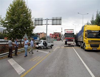 Kaza, Otogar Kavşağı Sinop yol ayrımında saat 10.45 sıralarında meydana geldi. Edinilen bilgiye göre, Amasya’dan Samsun’a hastaneye gelen Hüseyin Kılıç’ın (42) kullandığı 05 KE 267 plakalı otomobil, yolun sol şeridinden Otogar kavşağında Sinop yol ayrımına döneceği esnada yolun sağından ilerleyen İstanbul’dan Rusya’ya gitmekte olan Ali Yüksel (34) yönetimindeki VAN 065 çekici ve S T 065 dorse Gürcistan plakalı TIR ile çarpıştı