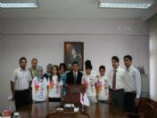 Seviye Belirleme Sınavı'nda (SBS) 500 tam puan alan Aysima Çüçen, Ömer Faruk Turan, Emir Gökdemir, Taha Temir, Hatice Kübra Polat, Şeyma Kiki, Zehra Kiki ve Hatice Nur Koç Vali Yardımcısı Mehmet Gök'ü ziyaret ettiler