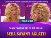 Seda Sayan'a twitter'dan ulaşan bir izleyici, bir erkek olarak erkekler tarafından tecavüze uğradığını yazdı. Tüm düzeninin bozulduğunu söyleyen izleyici, evli olduğunu da belirtti. Bu mesaj üzerine söyleyecek söz bulamayan Seda Sayan, göz yaşlarına hakim olamadı. "Çok üzüldüm. Sana söz veriyorum seni hocama göndereceğim" diyen Sayan, "Gerçekten çok ürperdim. Keşke bunu ulu orta yazmasaydın. Çok duygulandım" şeklinde konuştu. Seda Sayan, bundan sonra o kişiyi takip edeceğini ve yardım edeceğini söyledi.