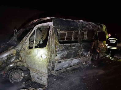 Motordan dumanlarin yükseldigini fark eden sürücü araci saga çekerek yolcularla beraber araçtan indi. Sürücü yanan araca kendi imkanlariyla müdahale etse de alevler tün araci sardi. Bölgeye ulasan itfaiye ekipleri, yangina müdahale çalismasi baslatti. Alev topuna dönen minibüsteki yangin söndürülürken, araçtan geriye demir yigini kaldi.
