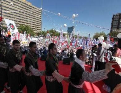 Alanda toplanan binlerce eylemci 1 Mayıs'ı coşku içinde kutladı. KESK ve DİSK öncülüğünde Ankara Garı önünde toplanan sivil toplum kuruluşları, sendika ve siyasi parti temsilcilerinin arasında bulunduğu grup, taleplerini dile getiren pankartlarla buradan kortej oluşturup, Sıhhiye Meydanı’na yürüdü.