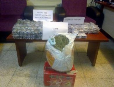 Edinilen bilgiye göre, polis ekipleri Sivas-Ankara karayolu üzerinde durdurmuş oldukları şüpheli bir otomobilde piyasa değeri yaklaşık 40 bin lira olan 285 adet cep telefonu ele geçirdi. Ayrıca yine aynı şahıs üzerinde 2 kilograma yakın ot esrar ve hassas terazi ele geçirildi. Gözaltına alınan şahıs ifadesinin ardından mahkemeye sevk edildi.