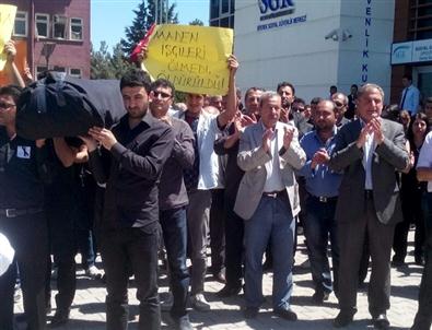 Şanlıurfa'nın Siverek ilçesinde çeşitli sivil toplum örgütü üyeleri, Sosyal Güvenlik Kurumu (SGK) binasına siyah tabut bırakarak, yüzlerce kişinin öldüğü Soma'daki iş kazasına tepki gösterdi.
